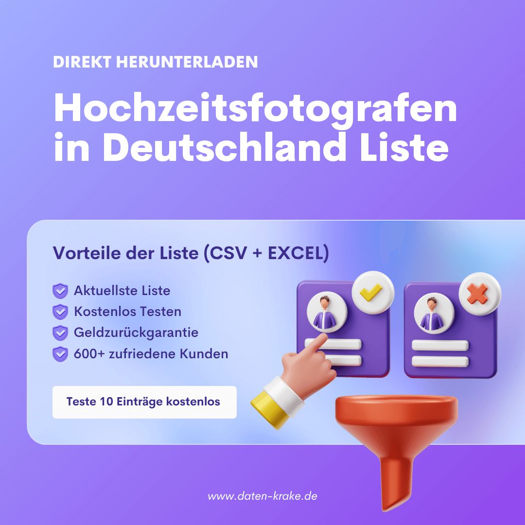 Hochzeitsfotografen in Deutschland Liste mit 1.593 Einträgen.