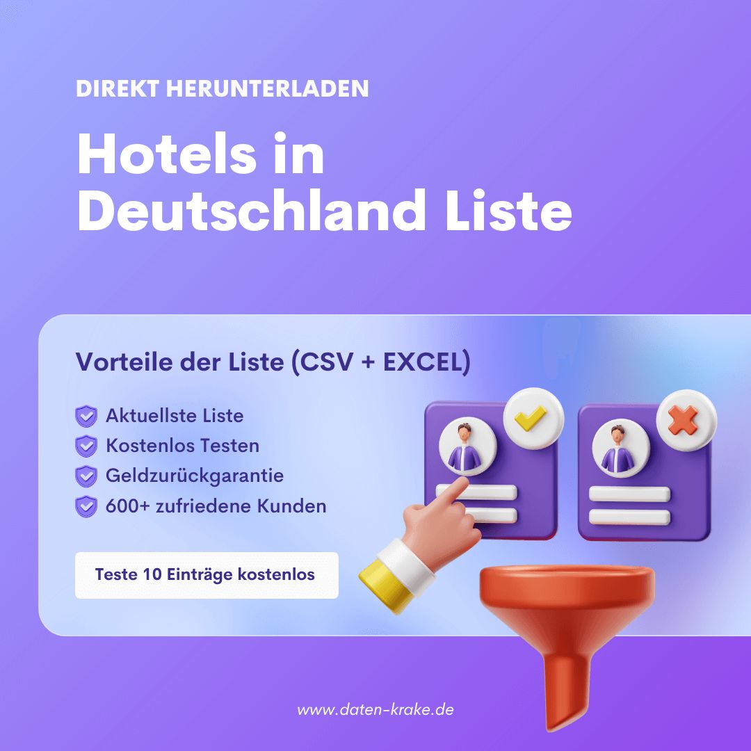 Hotels in Deutschland Liste mit 25.118 Einträgen.